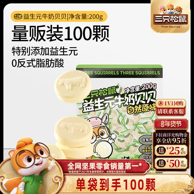 【三只松鼠_益生元牛奶贝贝200g】奶片奶贝儿童零食量贩独立包装