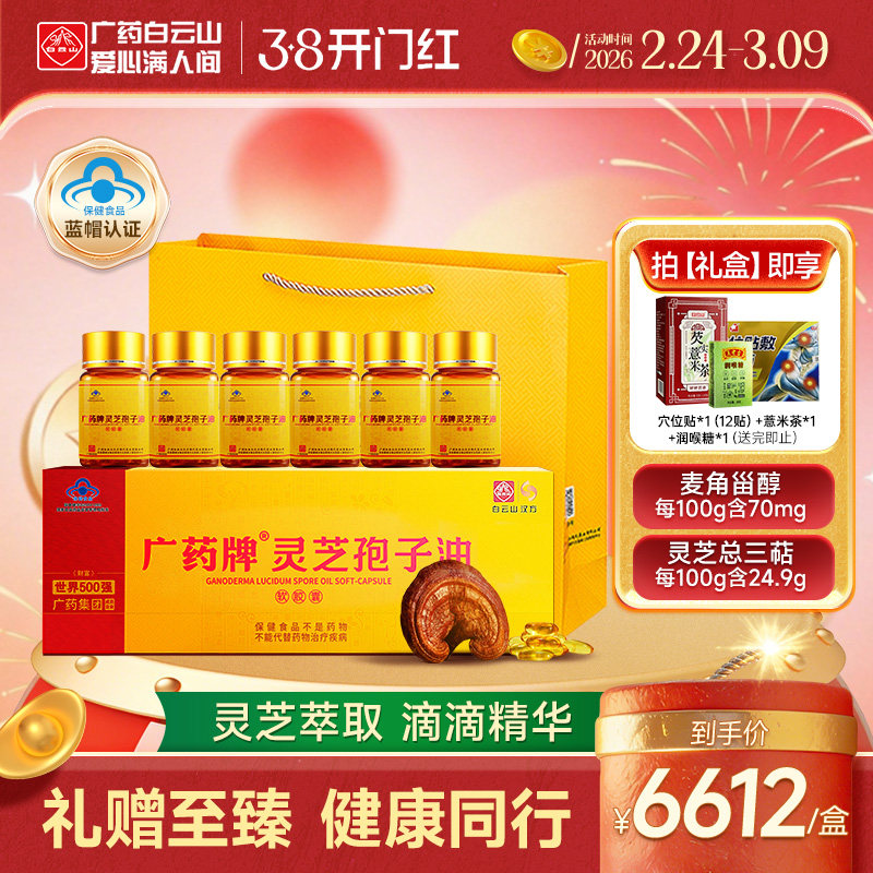 • 泡美丽»»白云山汉方广药牌灵芝孢子油软胶囊400mg/粒增强免疫力官方旗舰店