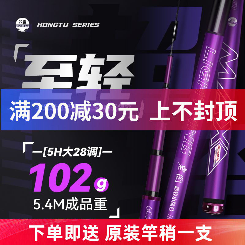 双宝宏图轻量小综合竿5H鱼竿手杆超轻超硬钓鱼竿台钓杆极轻版野钓
