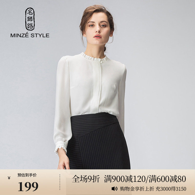 名师路春秋长袖上衣2026年新款女法式雪纺白色衬衫女内搭设计感