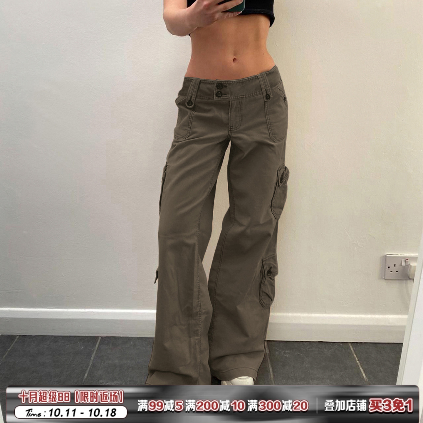ROCKMORE【美式基础】做旧灰色宽腰设计休闲裤 多口袋阔腿工装裤