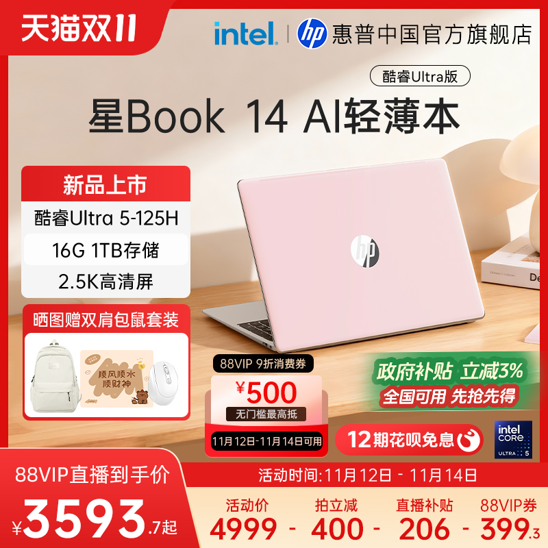 【政府补贴3%】HP/惠普可选星Book14英特尔酷睿ultra5/7笔记本电脑