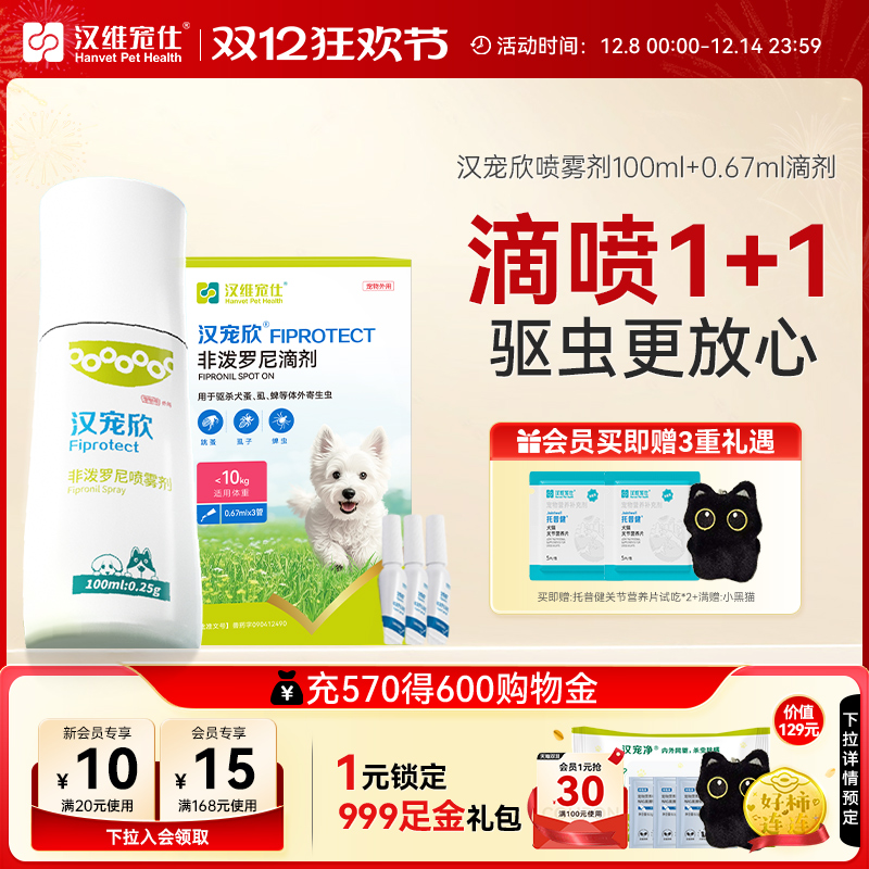 汉维宠仕汉宠欣非泼罗尼滴剂体外驱虫喷雾狗狗猫咪可用蜱虫跳骚