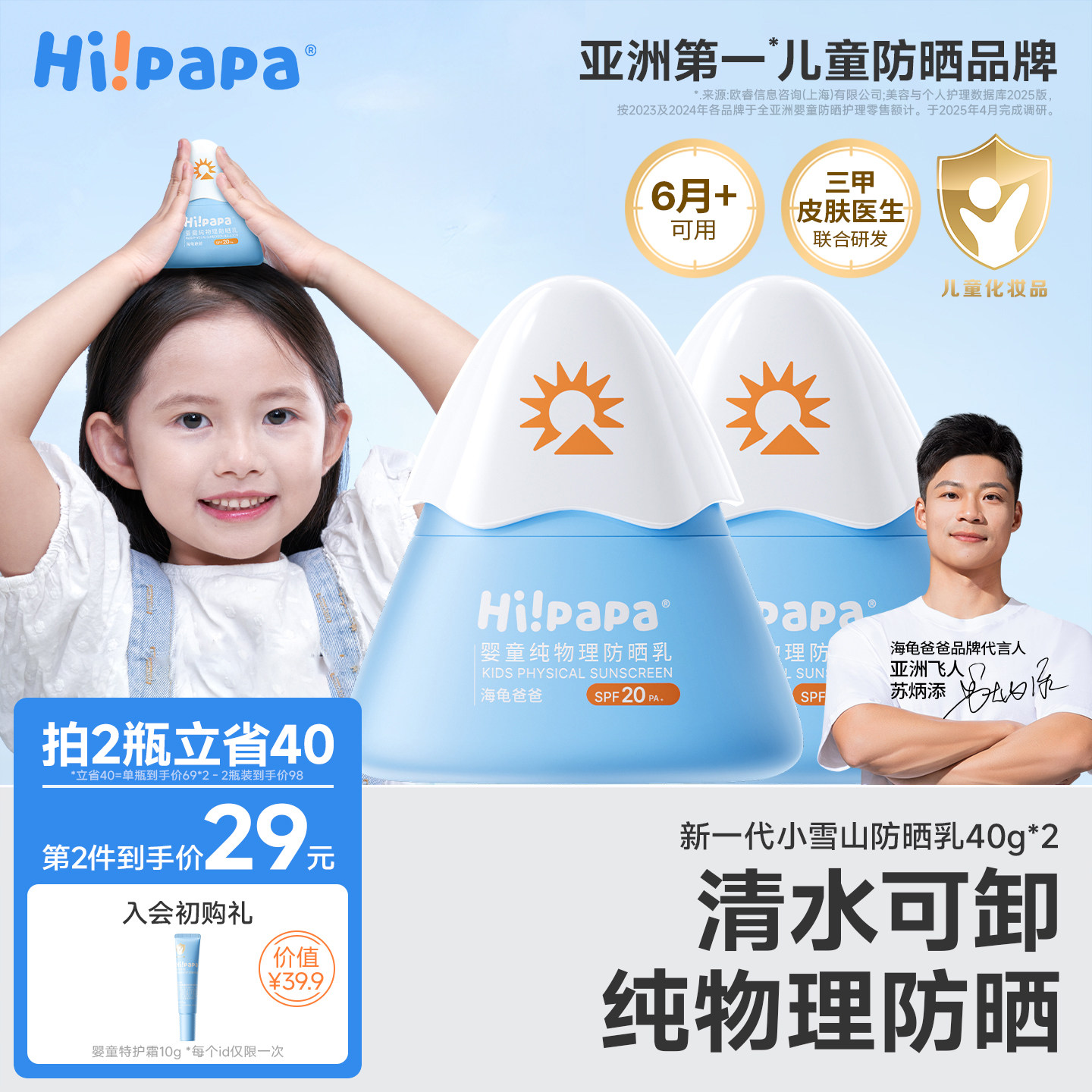 海龟爸爸儿童防晒霜小雪山防晒宝宝专用隔离紫外线婴儿物理防晒乳