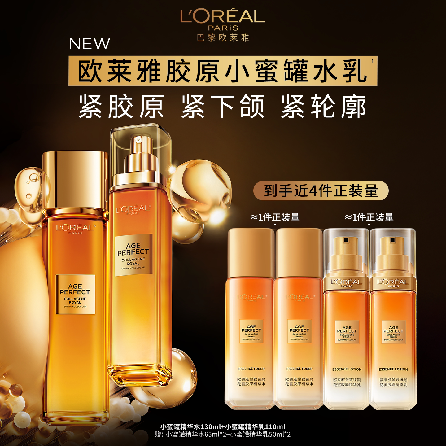 欧莱雅小蜜罐花蜜胶原水乳套装补水保湿紧致抗皱抗老护肤品正品