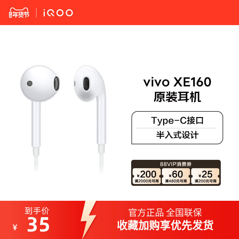 vivo XE160 XE710原装有线耳机type-c接口高音质官方旗舰店正品