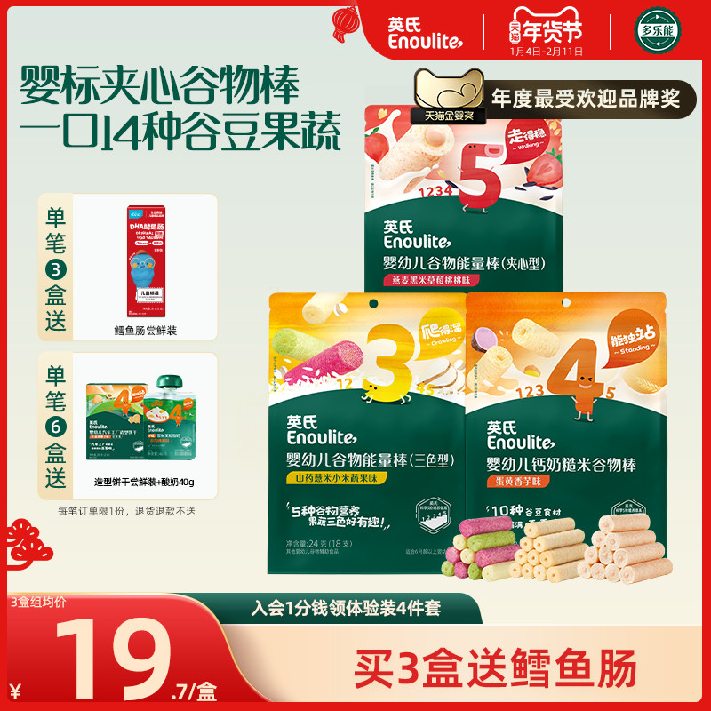 英氏婴幼儿钙奶谷物棒 宝宝米饼无添加儿童零食饼干1岁送婴儿零食