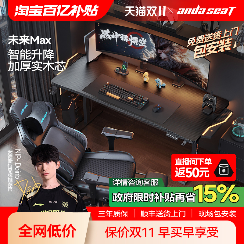 • 泡美丽»»安德斯特未来战士max 电竞桌pro智能电动升降桌实木书桌子电脑桌