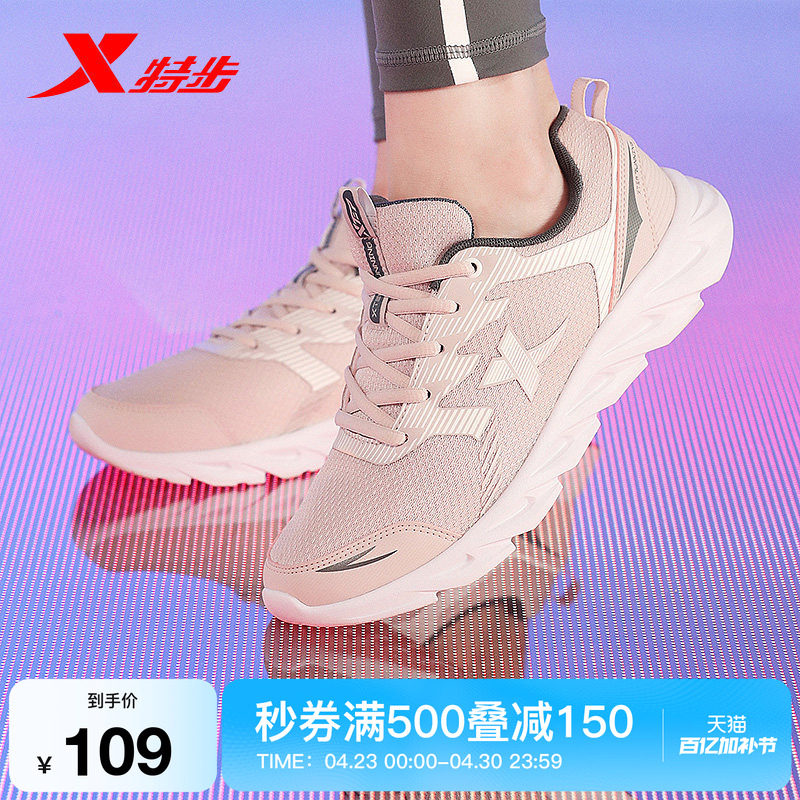 特步运动鞋女鞋夏季新款透气网面轻便休闲软底妈妈减震体育跑步鞋