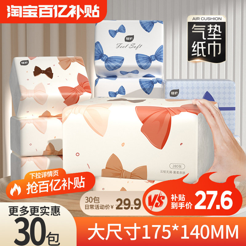 植护大包抽纸整箱批纸抽家用气垫餐巾纸婴儿柔面巾纸擦手卫生纸巾