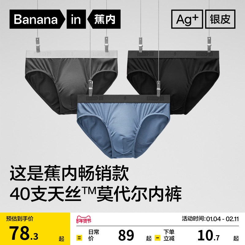 • 泡美丽»»3件蕉内银皮301Pro男士莫代尔三角内裤薄大码冰丝纯棉透气裆短裤