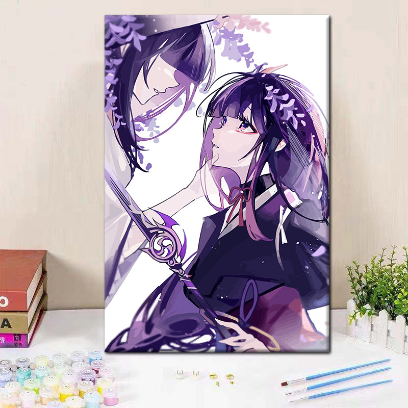 雷电将军阿影diy数字油画动漫手绘填充涂色画画丙烯油彩画装饰画