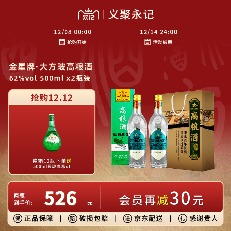 金星牌高粱酒大方玻62度清香型高度礼盒装天津特产整箱装白酒