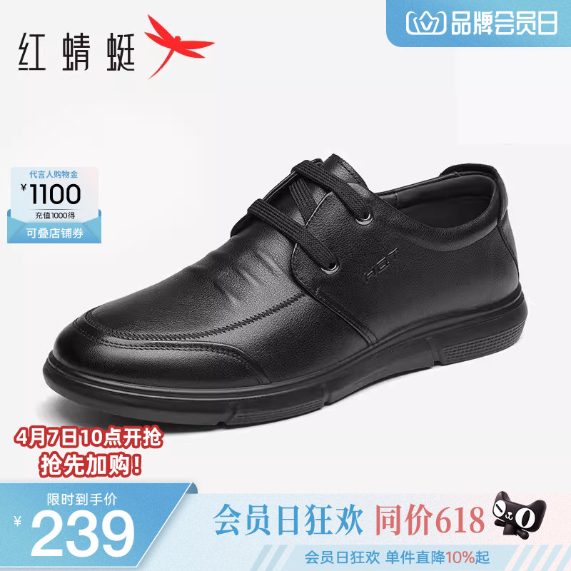 红蜻蜓男鞋春季真皮休闲皮鞋男士软底一脚蹬鞋子休闲鞋中年爸爸鞋