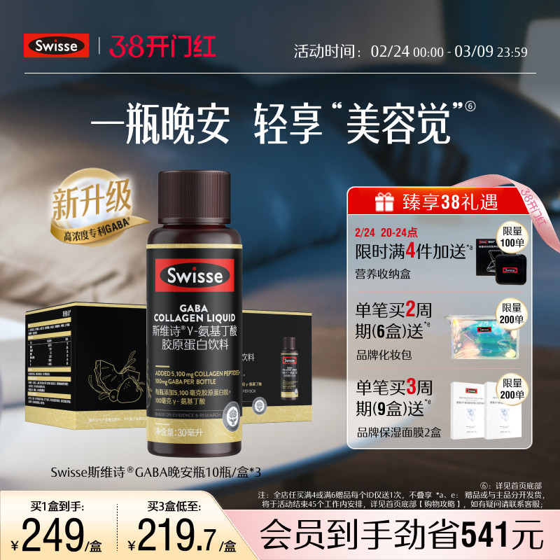 【热巴推荐】Swisse斯维诗GABA晚安瓶胶原蛋白肽玻尿酸保健品饮品
