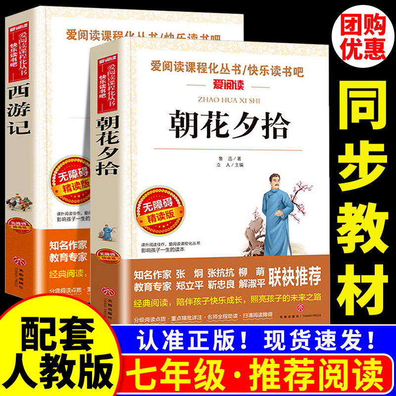 • 泡美丽»»七年级必读的课外书朝花夕拾鲁迅原著正版西游记人教版未删减版完整初中语文课外读物初