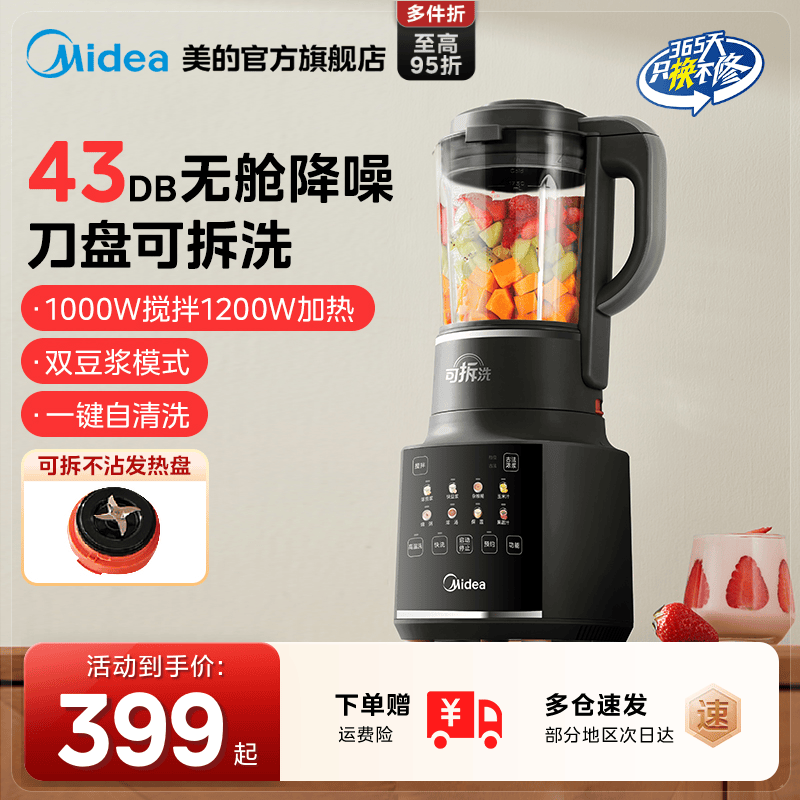 美的破壁机家用全自动多功能料理烹饪机果汁榨汁豆浆机轻静音新款