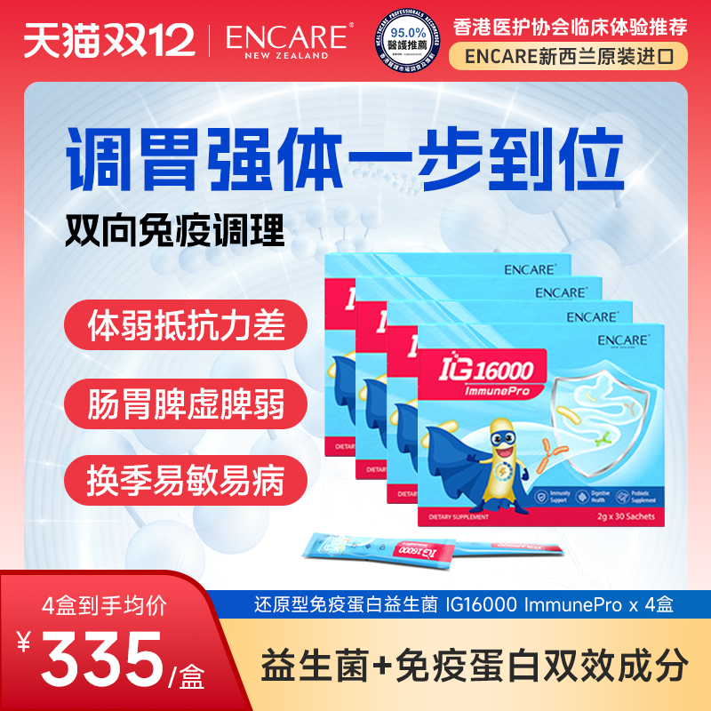 4盒ENCARE耳牛还原型IG16000免疫蛋白粉免疫益生菌调理肠道消化