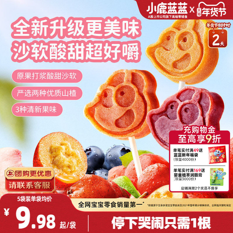 小鹿蓝蓝儿童山楂棒 安全无添加宝宝酸甜大山楂果肉条年货零食礼