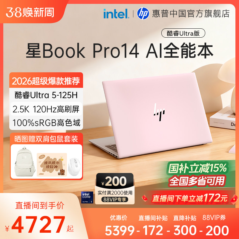 【国家补贴15%】HP/惠普可选星Book Pro14英特尔酷睿ultra5轻薄