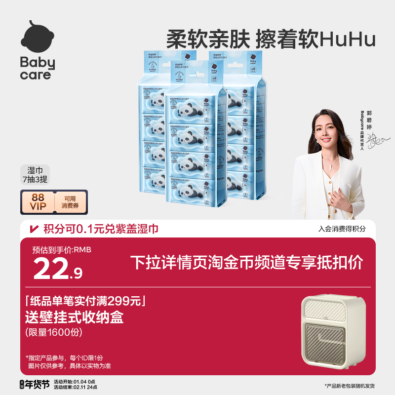 【详情领专属优惠】babycare熊猫湿纸巾婴儿便携手口专用宝宝7抽