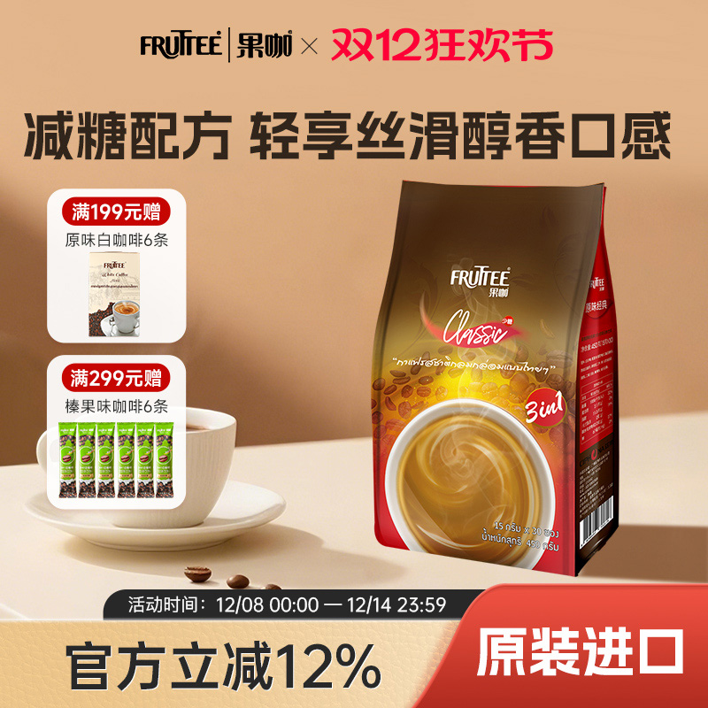 FRUTTEE果咖泰国进口三合一速溶咖啡经典原味减少糖效期至25年3月