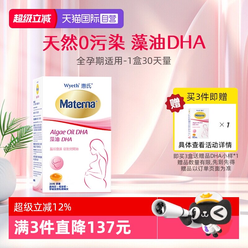 【自营】惠氏玛特纳dha藻油孕妇专用孕产妇哺乳期孕期营养品30粒