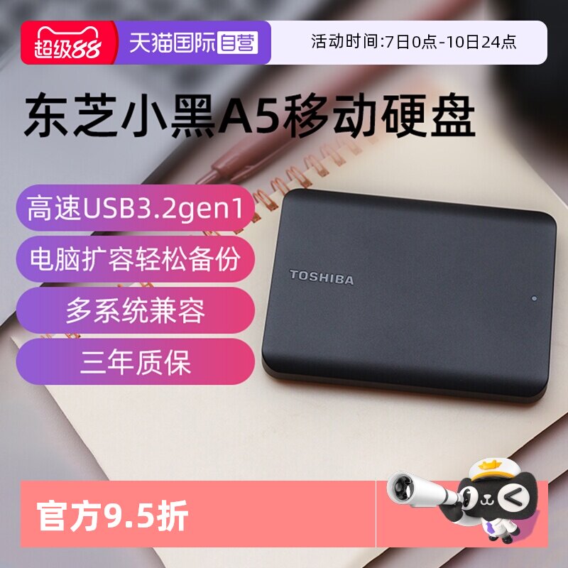• 泡美丽»»【自营】东芝移动硬盘2T 4T 1T小黑A5高速USB3.2电脑外接外置存储
