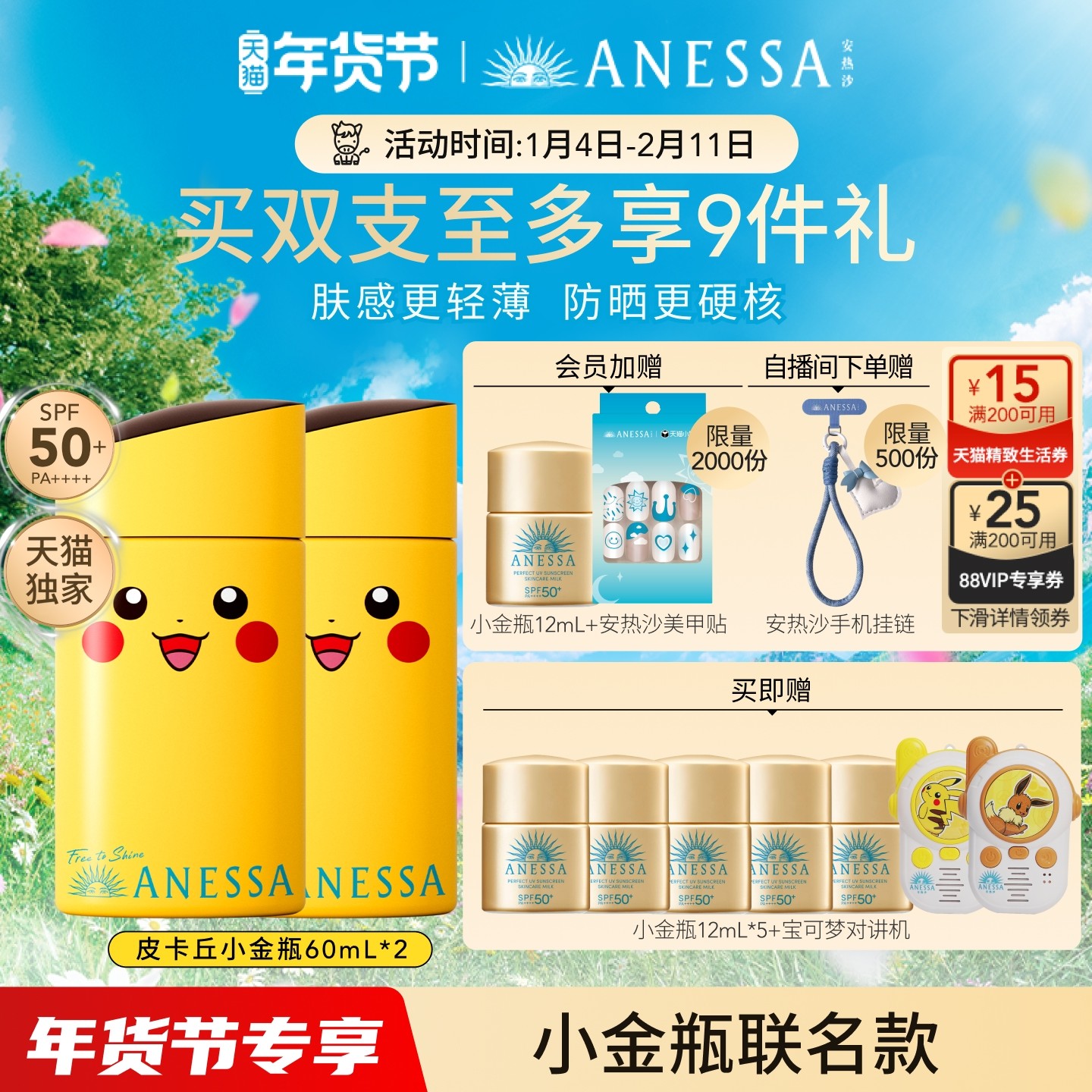 安热沙小金瓶防晒霜乳60ml*2高倍耐晒轻薄清爽防水