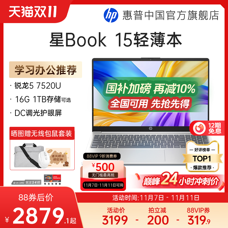 【政府补贴10% 全国可用】HP/惠普可选星Book 14/15锐龙 7000系