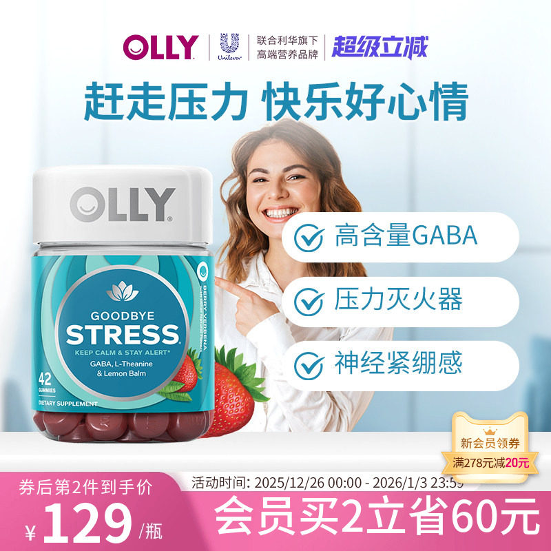 OLLY元气stress睡眠GABA深睡糖氨基丁酸舒缓压力软糖心情保健品