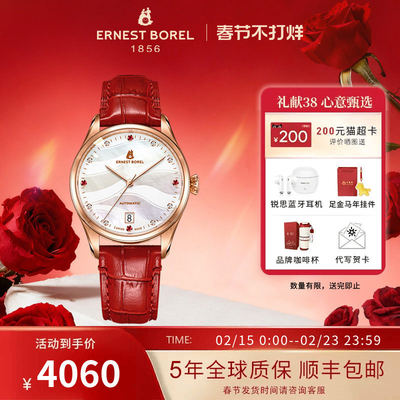 瑞士依波路手表女士皮带机械手表女自动机械机芯高级轻奢日历腕表