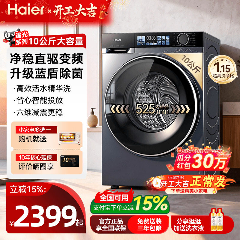 海尔直驱37E滚筒洗衣机以旧换新10公斤全自动家用洗烘一体云溪77E