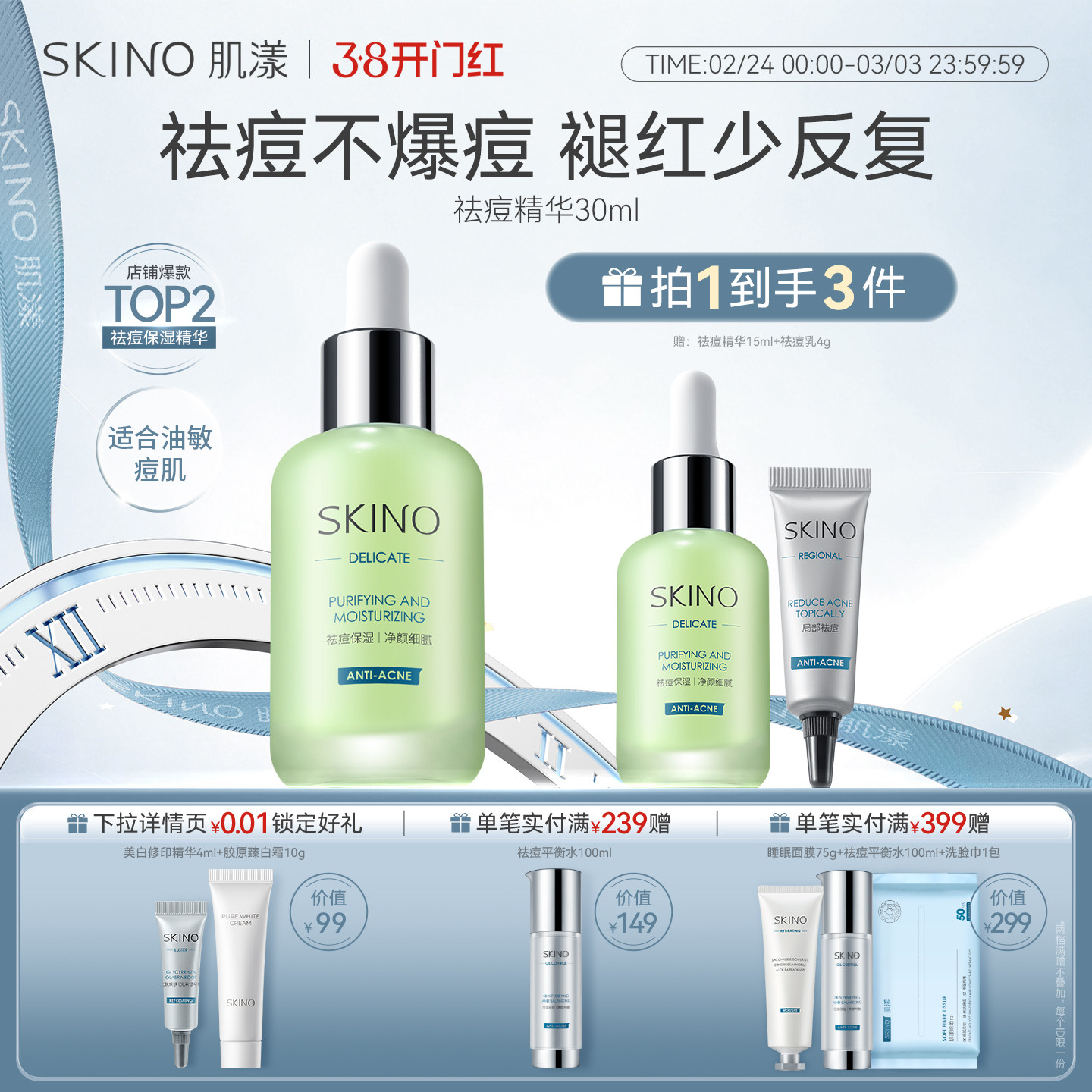 SKINO肌漾祛痘精华小绿瓶祛痘控油维稳祛青春痘闭口粉刺改善痘肌
