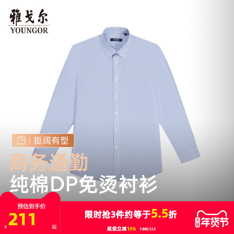 【条纹100支DP免烫】雅戈尔春秋新品商务休闲棉弹新疆棉长袖衬衫
