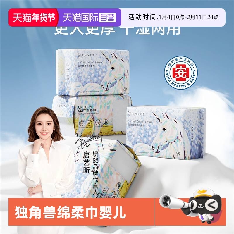 【自营】嫚熙独角兽绵柔巾婴儿一次性洗脸巾干湿两用宝宝棉柔巾纸