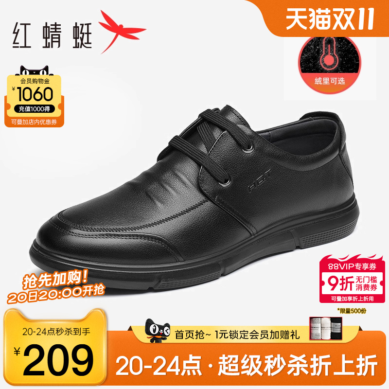 红蜻蜓男鞋秋季真皮休闲皮鞋男士软底一脚蹬鞋子休闲鞋中年爸爸鞋