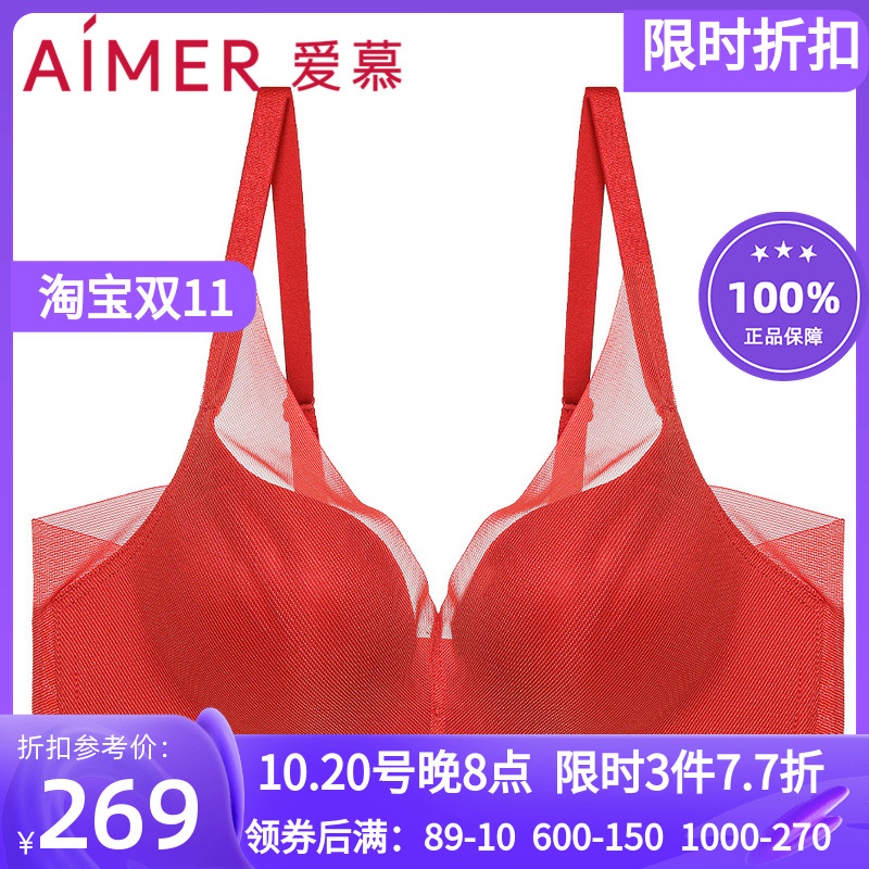 爱慕官方正品 极光 3/4无钢托中厚隐孔本命年红色文胸罩AM177191