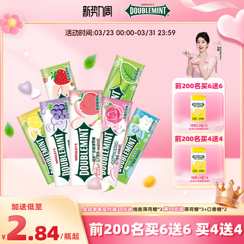 绿箭无糖薄荷糖口气清新提神糖果约35粒装零食接吻糖糖果清新口气