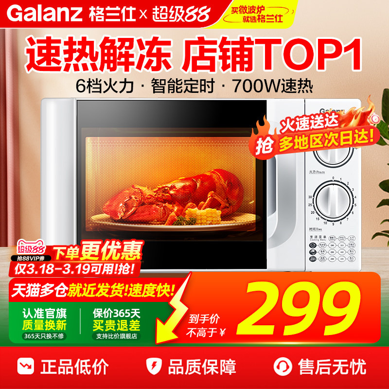 政府补贴格兰仕微波炉20L家用智能小型迷你机械式多功能解冻D4