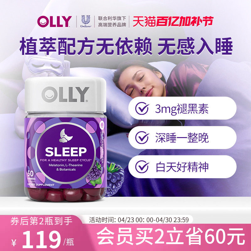 OLLY褪黑素软糖晚安瓶助非睡眠片gaba茶氨酸sleepwell退黑素进口