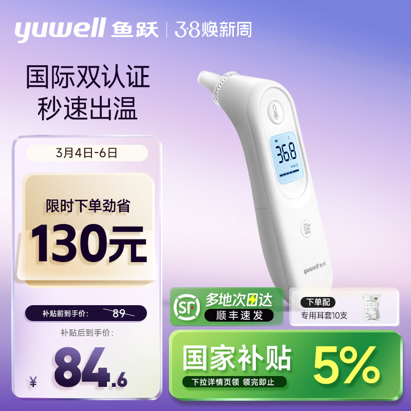 鱼跃耳温枪电子体温计无水银医用家用高精准老人婴儿童专用YHT101
