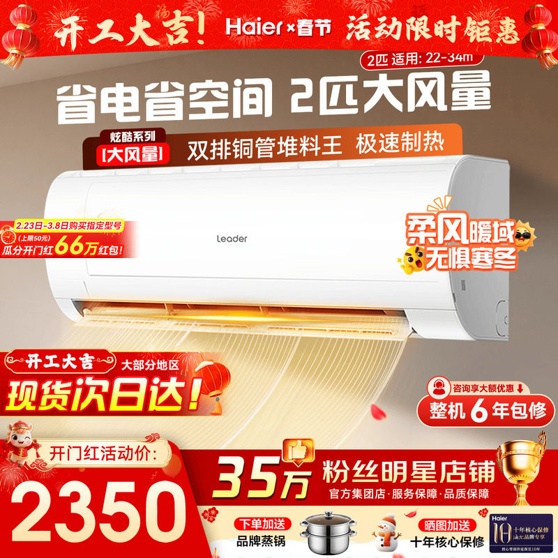 国补15%海尔空调3匹2匹统帅大挂机家用冷暖客厅一级能效旗舰店