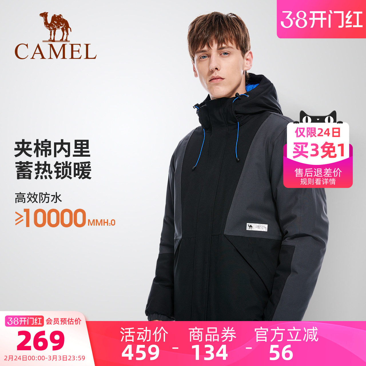 骆驼男装连帽棉衣官方冬季户外加厚夹棉冲锋衣外套防风防水棉袄男