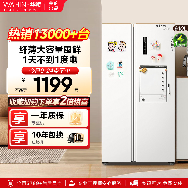 • 泡美丽»»美的出品华凌610L对开双开门冰箱家用大容量白色一级能效变频无霜