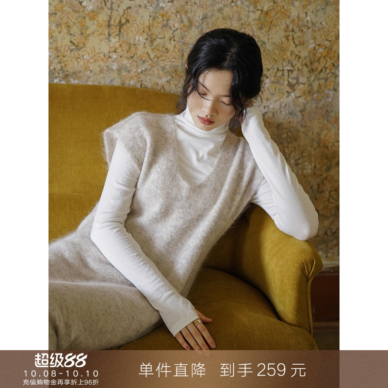 【到手259元】羊驼毛绒感温柔风V领背心针织毛衣连衣裙内搭裙子女