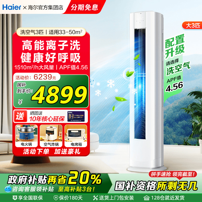 【麦浪】海尔洗空气空调家用2匹3匹一级能效变频客厅立式柜机72E3