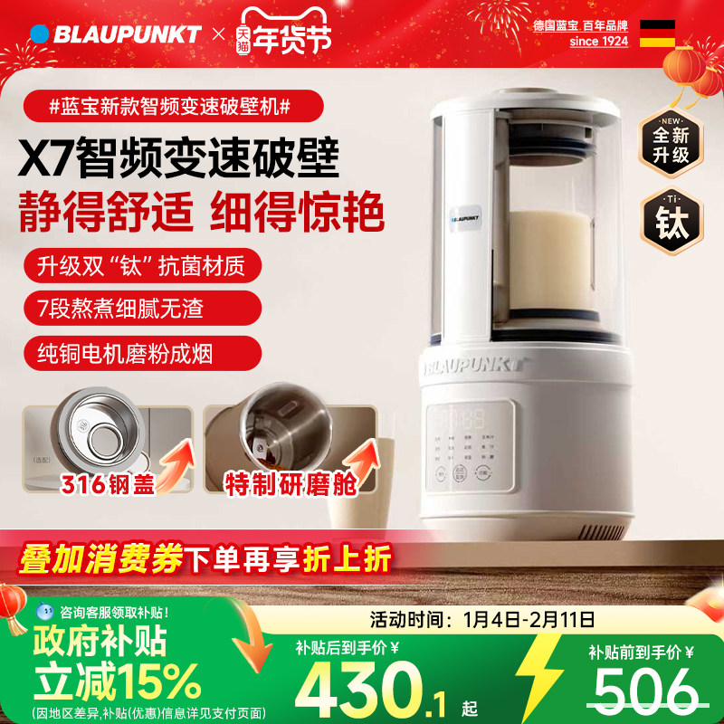 德国蓝宝柔音破壁机家用全自动豆浆机静低噪音无渣辅食料理机新款
