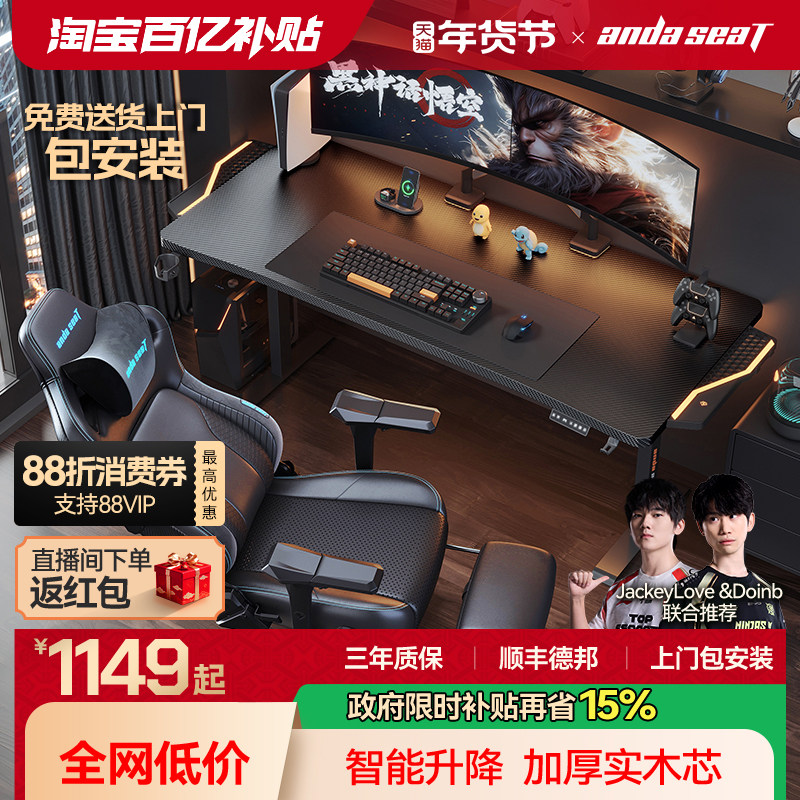 安德斯特未来战士max 电竞桌pro智能电动升降桌实木书桌子电脑桌