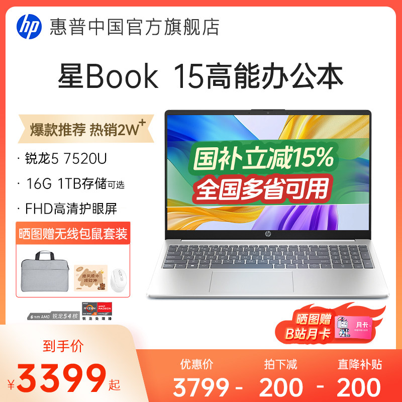 【国家补贴15%】HP/惠普可选星Book 14/15锐龙 7000系处理器笔记